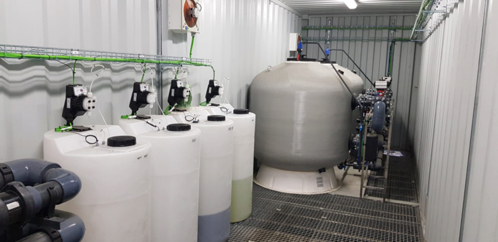 TRIPLE TRATAMIENTO. AGUA POTABLE-AGUA BLANDA DESMINERALIZADA-AGUA DECLORADA. Planta portátil contenerizada 2×40´